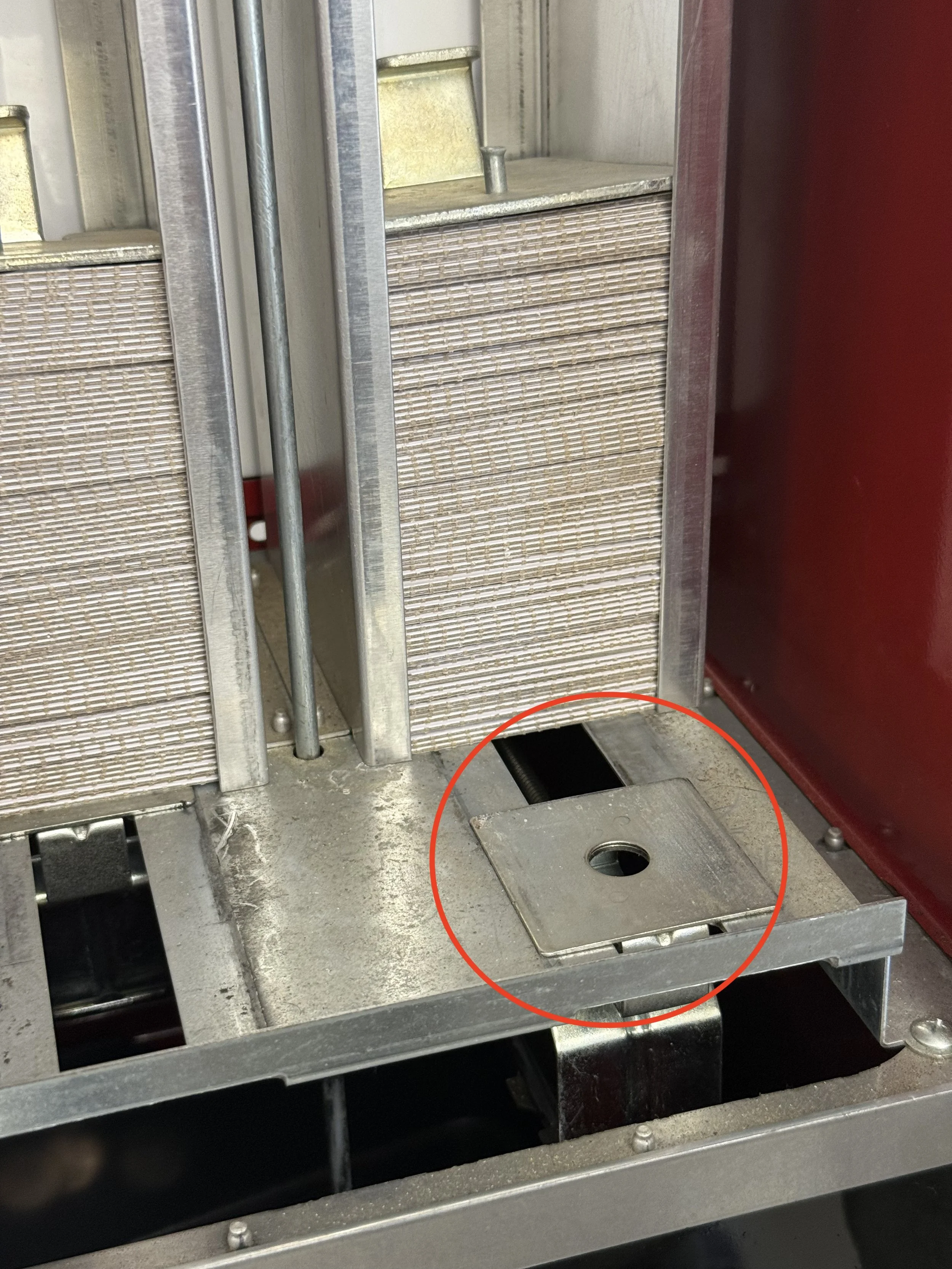 We’ll want to start by accessing the carriage (aka the flat metal plate with a circular hole — see below) on the side that is giving you trouble.