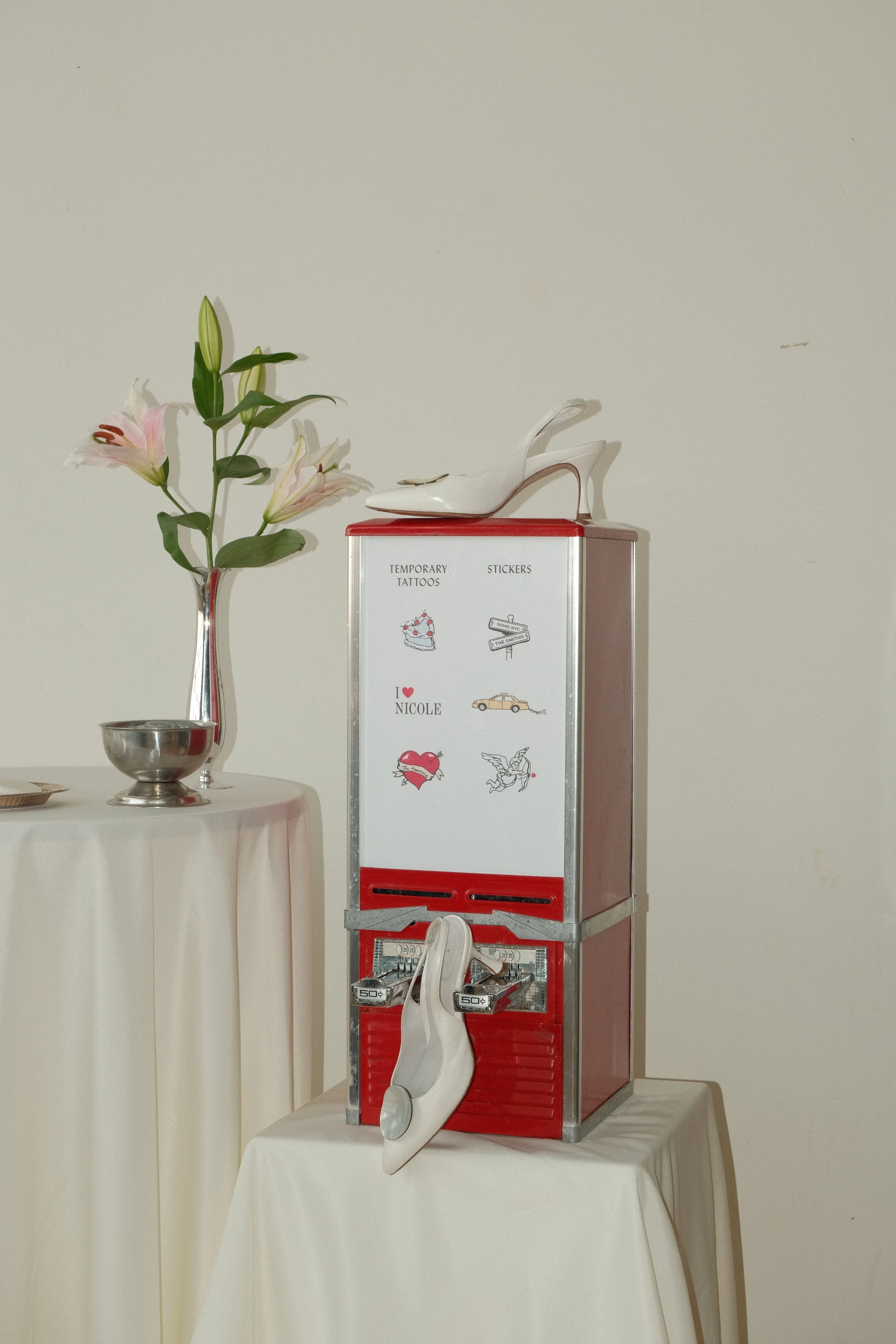 A simplified way to bring The Foyer experience to your celebration, our tabletop package features illustrated stickers and temporary tattoos styled for easy, tabletop display—without the full vintage vending machine.